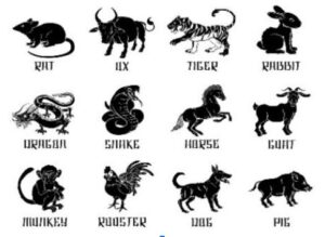 Tigar, Zec, Zmaj, Zmija, Konj, Koza, Majmun, Petao, Pas, Svinja, Pacov ili Bivo.